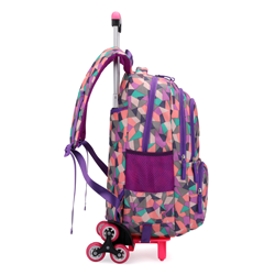 Sus 6 ruedas le facilitan mucho subir pendientes y escaleras, es amplia y le cupo todos sus libros y cuadernos, mas sus articulos de aseo y Educacion Fisica.